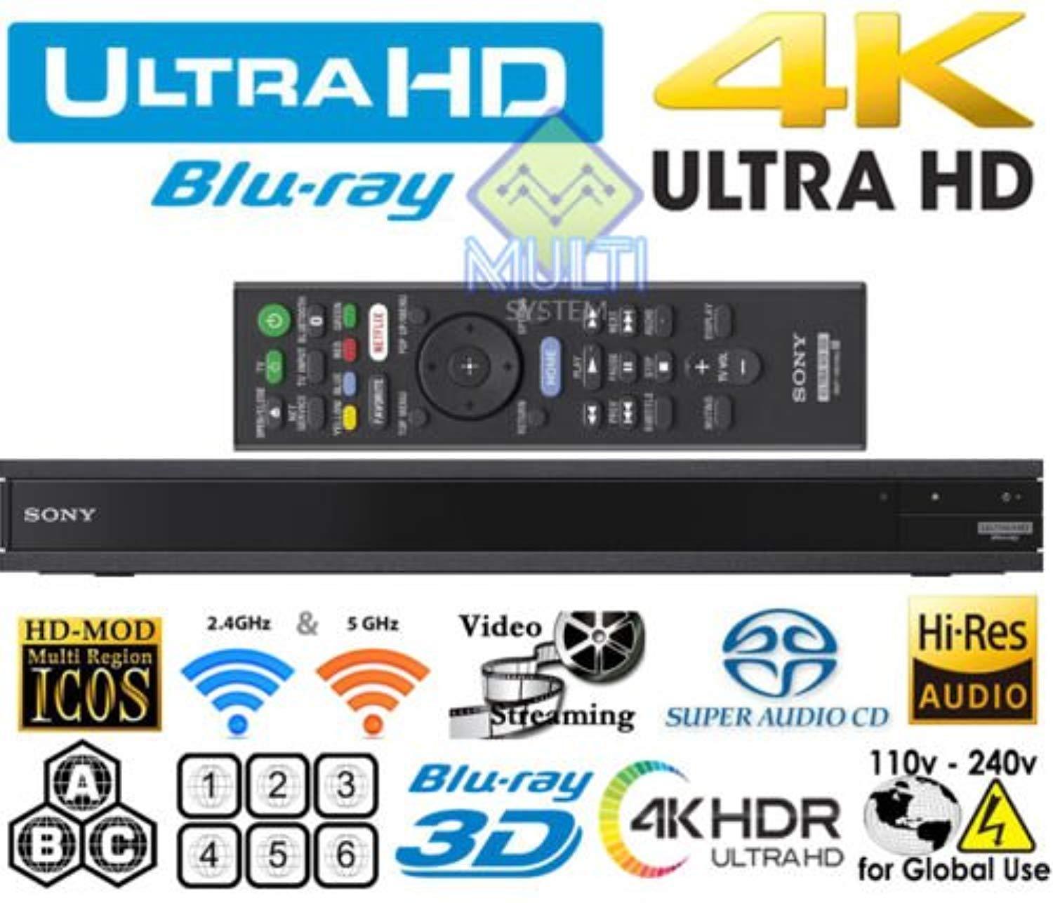 SONY X800 - UHD - 2D/3D - SACD - Wi-Fi - Dual HDMI - 2K/4K - Region Free Blu Ray Disc DVD Player - PAL/NTSC - USB - 100-240V 50/60Hz for World-Wide Use & 6 Feet Multi System 4K HDMI Cable