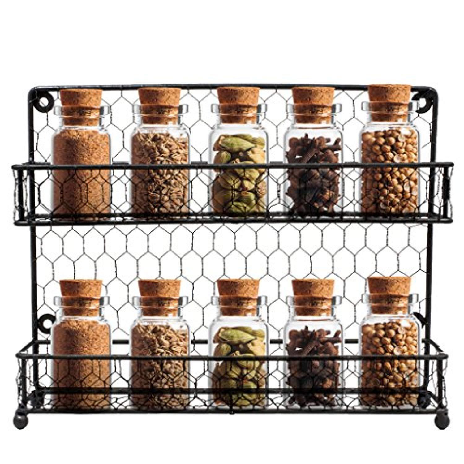 • 2 TIER SPICE RACK—Wall mounted spice, herb, and accessory rack fits easily on counter tops , walls, or in cabinets to free up space