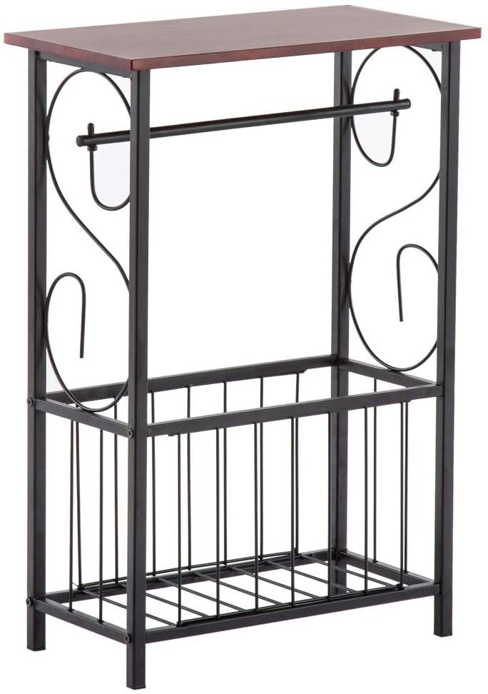 • 2. Enough space to store bathroom essentials. The removable bar holds up to 2 rolls of toilet tissue, while the bottom basket stores magazines, books or additional rolls