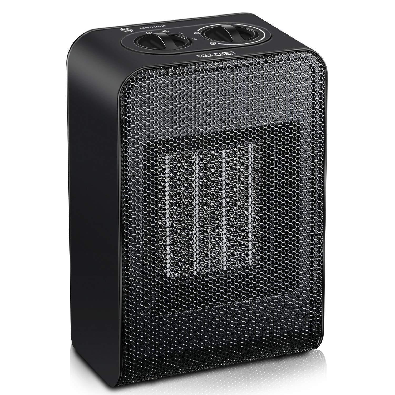 Soulcker Space Heater, Portable Heater With 750W/1500W Power Setting, 2 Seconds Heat-up, Tip-over and Over-heat Protection, Ceramic Small Space Heater for Office, Home, Indoor Use - Black