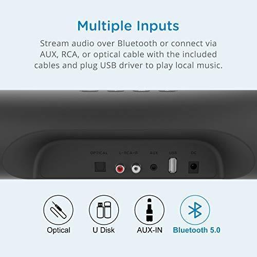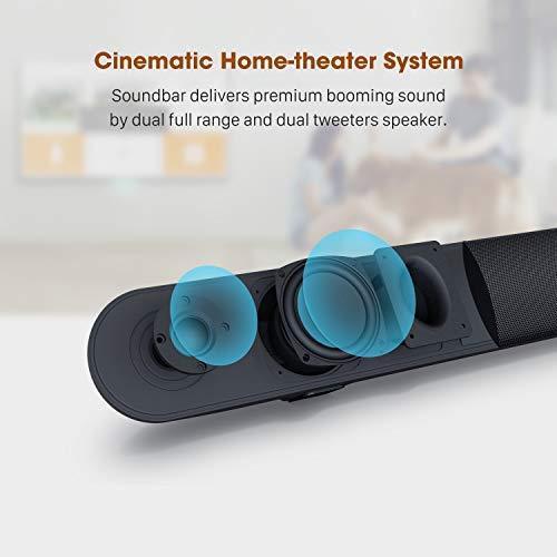 • Powerful Sound Bar: built-in 2 full range speakers and 2 tweeter drivers, not only can output 95dB expansive audio and room-filling sound, but also bring the powerful bass thanks to the 2 bass tubes.