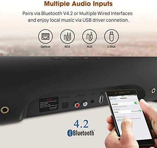 Soundbar, MEGACRA 80 Watts TV Sound Bar Home Theater Speaker with Dual Connection Way, Bluetooth 5.0, Movie/Music/Dialogue Audio Mode, Enhanced Bass Technology, Bass Adjustable, Wall Mountable