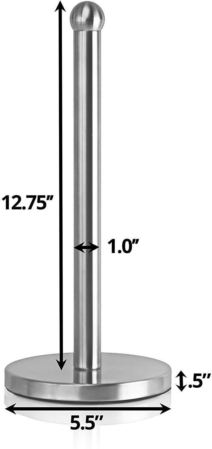 Stainless Steel Kitchen Paper Towel Holder Dispenser - Weighted Base - Sturdy, Durable, Rust-Proof