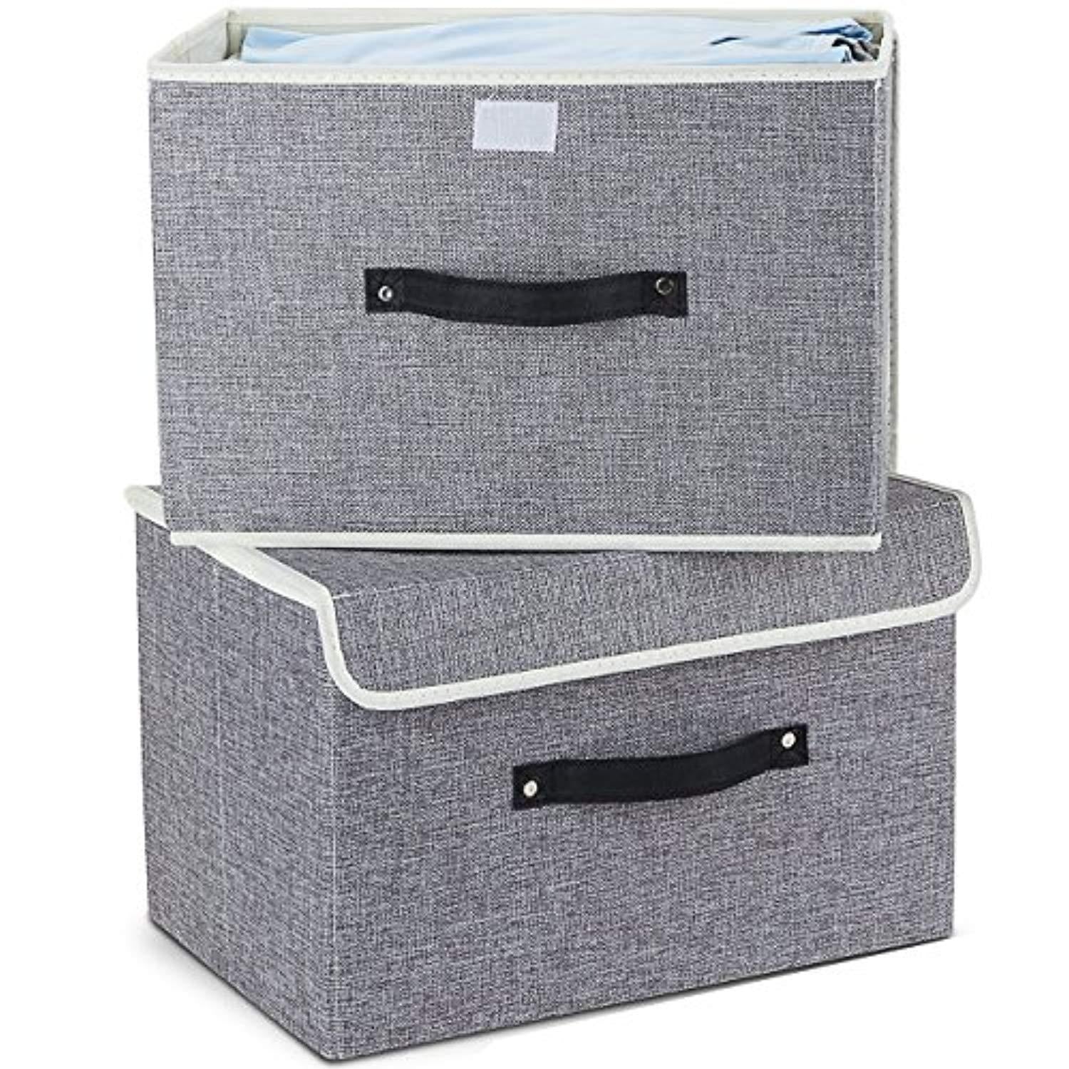 Storage Bins,Mee'life Set of Two Foldable Storage Box with Lids and Handles Storage Basket Storage Needs Containers Organizer With Built-in Cotton Fabric Closet Drawer Removable Dividers (Light Gray)