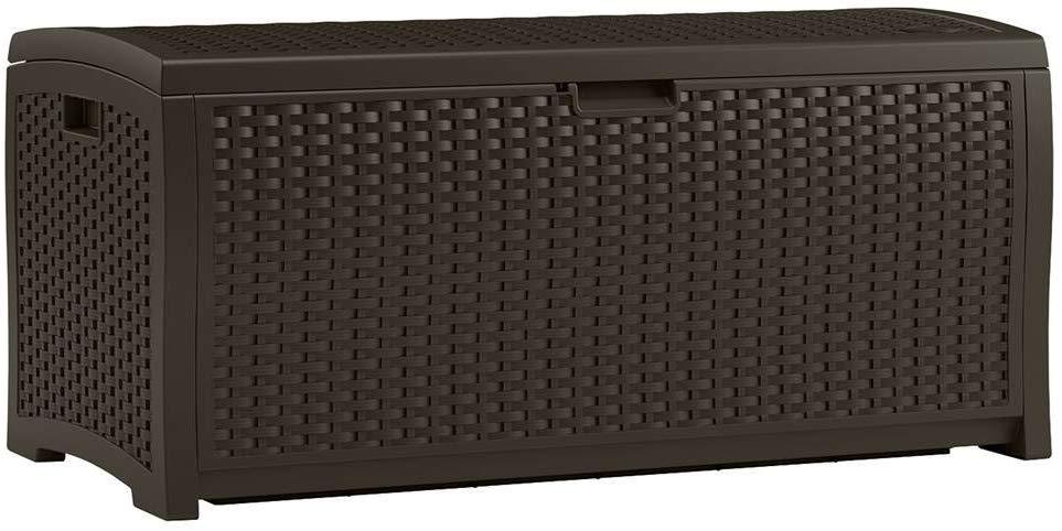 • DECK STORAGE BOX: Beautiful wicker plastic outdoor box has a 73-gallon capacity for patio, deck, yard, porch, garage, and shed storage!