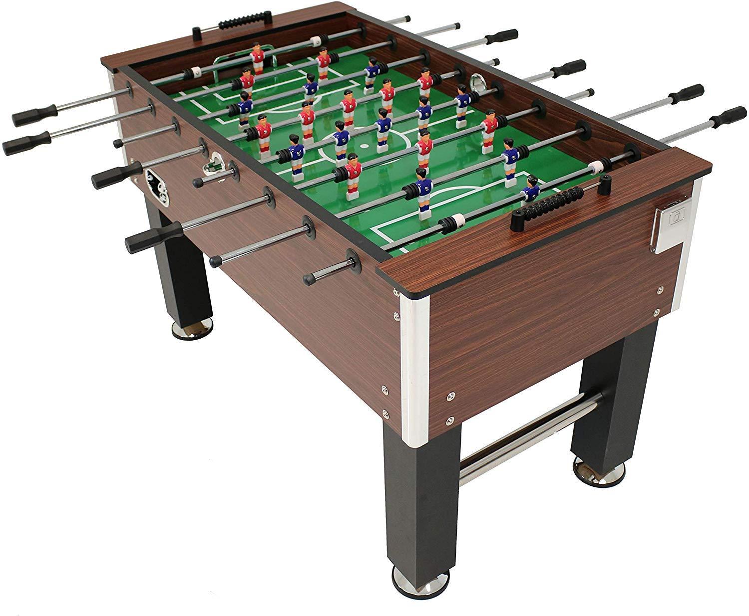 • INCLUDES ALL GAME NECESSITIES: 2 game balls, 4 leg levelers, players, manual score units, side ball returns, and plastic drink holders
