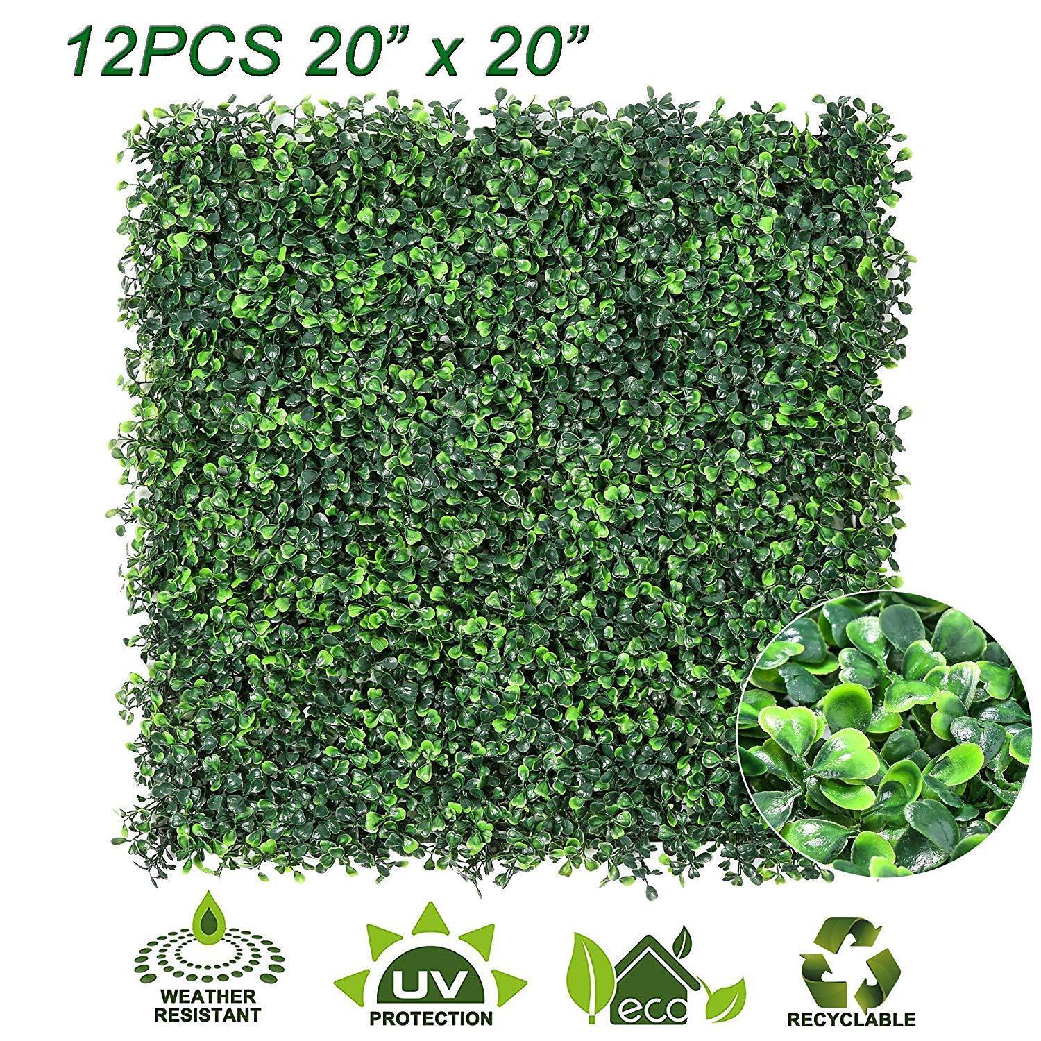 Sunnyglade 12PCS 20"x20" Artificial Boxwood Panels Topiary Hedge Plant, Privacy Hedge Screen, UV Protected Faux Greenery Mats Suitable for Outdoor, Indoor, Garden, Fence, Backyard and Décor (12PCS)