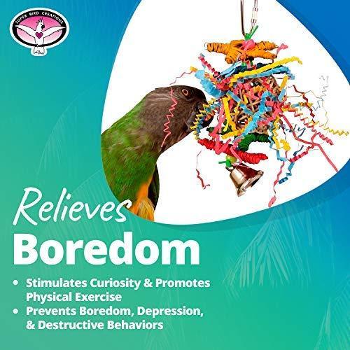 • Relieves boredom – properly designed bird toys are more than “just toys”. Super Bird Creations parrot toys are “playthings with a purpose” that help to ward off boredom, depression, aggression and destructive behaviors in parrots by stimulating physical activity, curiosity and mental engagement.