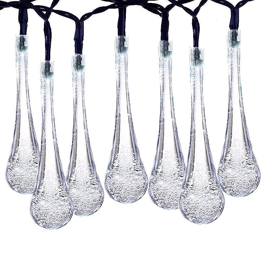SUPSOO Solar String Lights 40 LED Water Drop Solar Waterproof Lights for Garden, Patio, Yard, Home, Parties - White