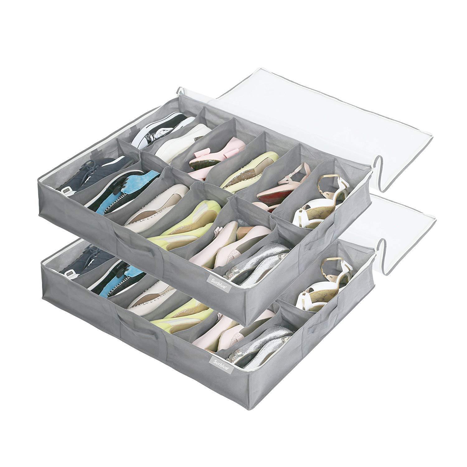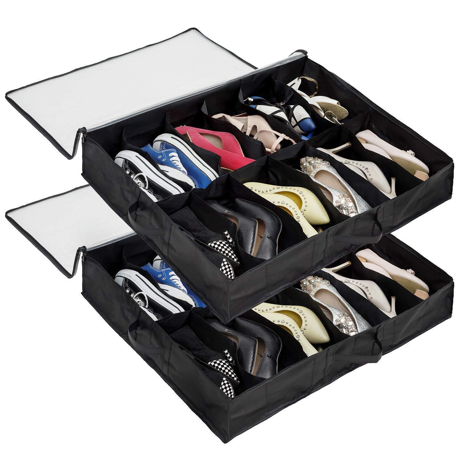 Surblue 12 Pairs Under-Bag Shoe Organizer Storage Bag with Transparent Skylight and Zippered Closure, Pack of 2