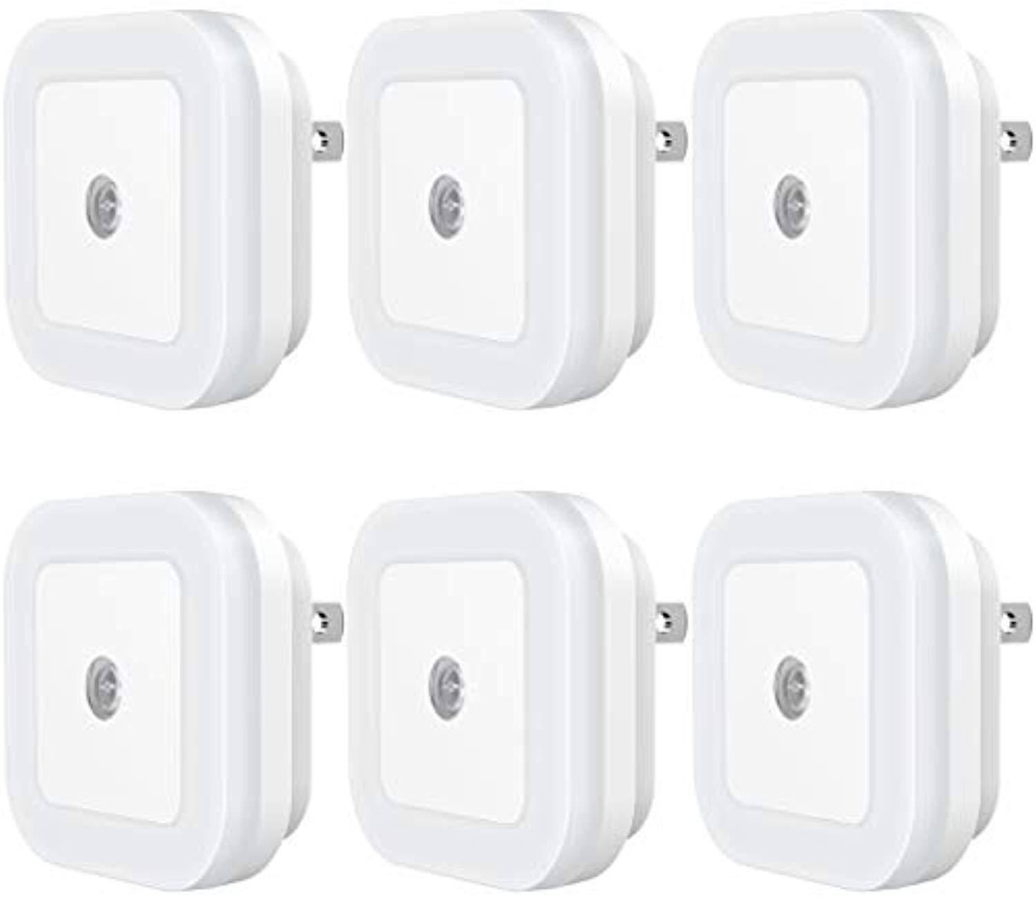 Sycees SC01 Plug-in LED Night Light Lamp with Dusk to Dawn Sensor for Hallway, Kitchen, Bathroom, Bedroom, Stairs, Daylight White, 6-Pack