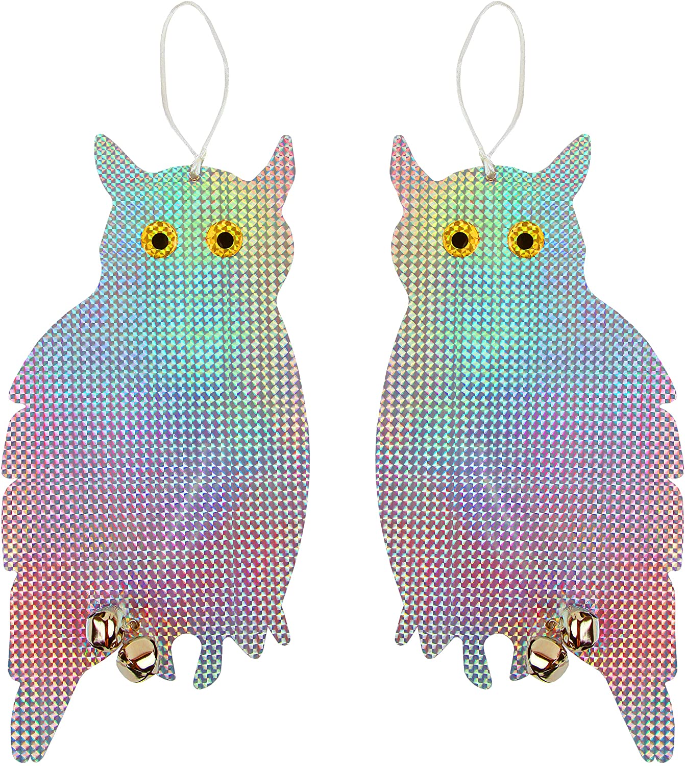 • BIRD DETERRENT- Life-sized holographic owl bird repellent device that reflects sunlight and emits sound to effectively scare birds away from the area. This owl bird deterrent will prevent birds from damaging your home, garden and valuable assets. Generally works for all types of birds. This bird scare device will help you eliminate and solve all your bird problems such as bird noises, bird droppings and nesting problems. Large sized owl bird repellent enough to refract light to any distance.