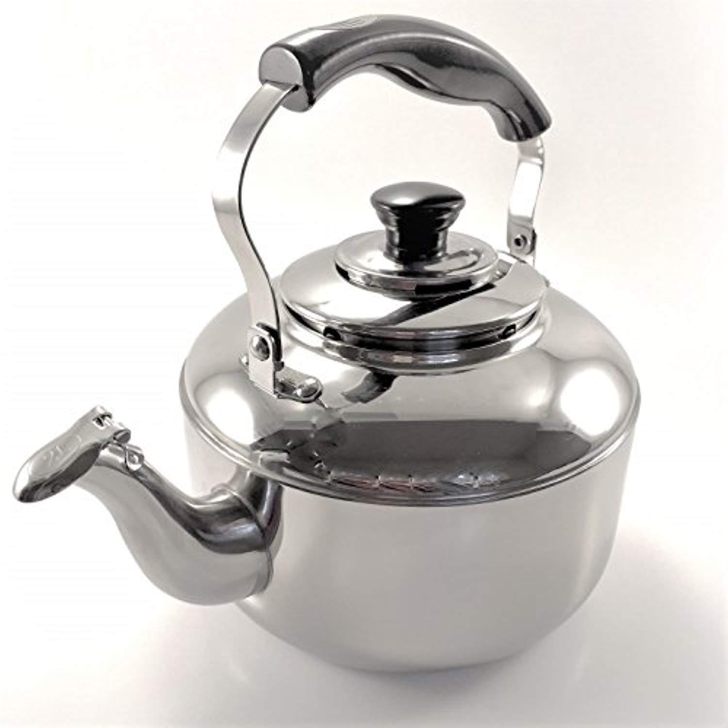 Tea Kettle Stovetop Whistling Teakettle Teapot, Stainless Steel, Thin Base, Mirror Finish, 2 liters