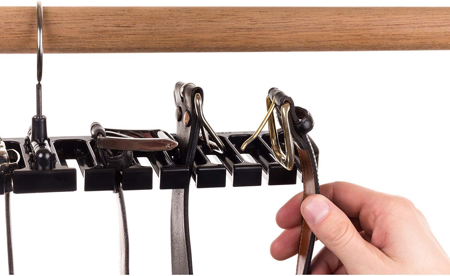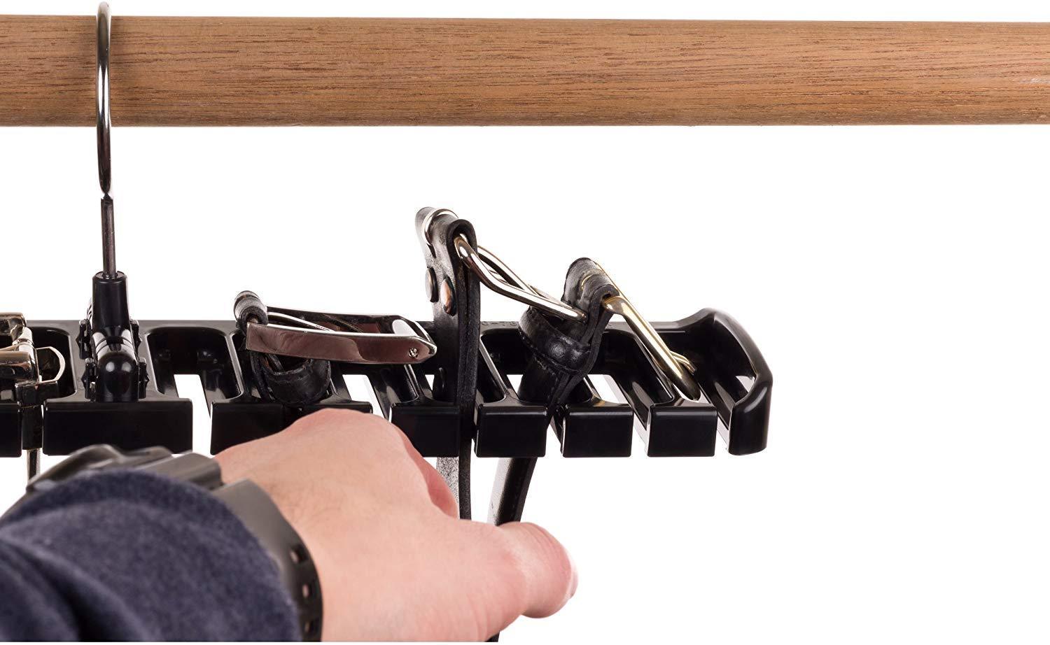 Holds securely up to 14 belts, space-saving and tidying up your closet Stylish Design Black Belt Rack...
