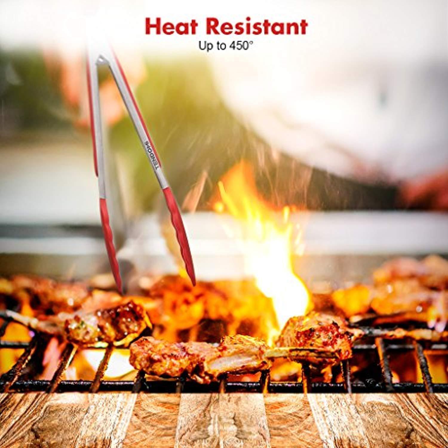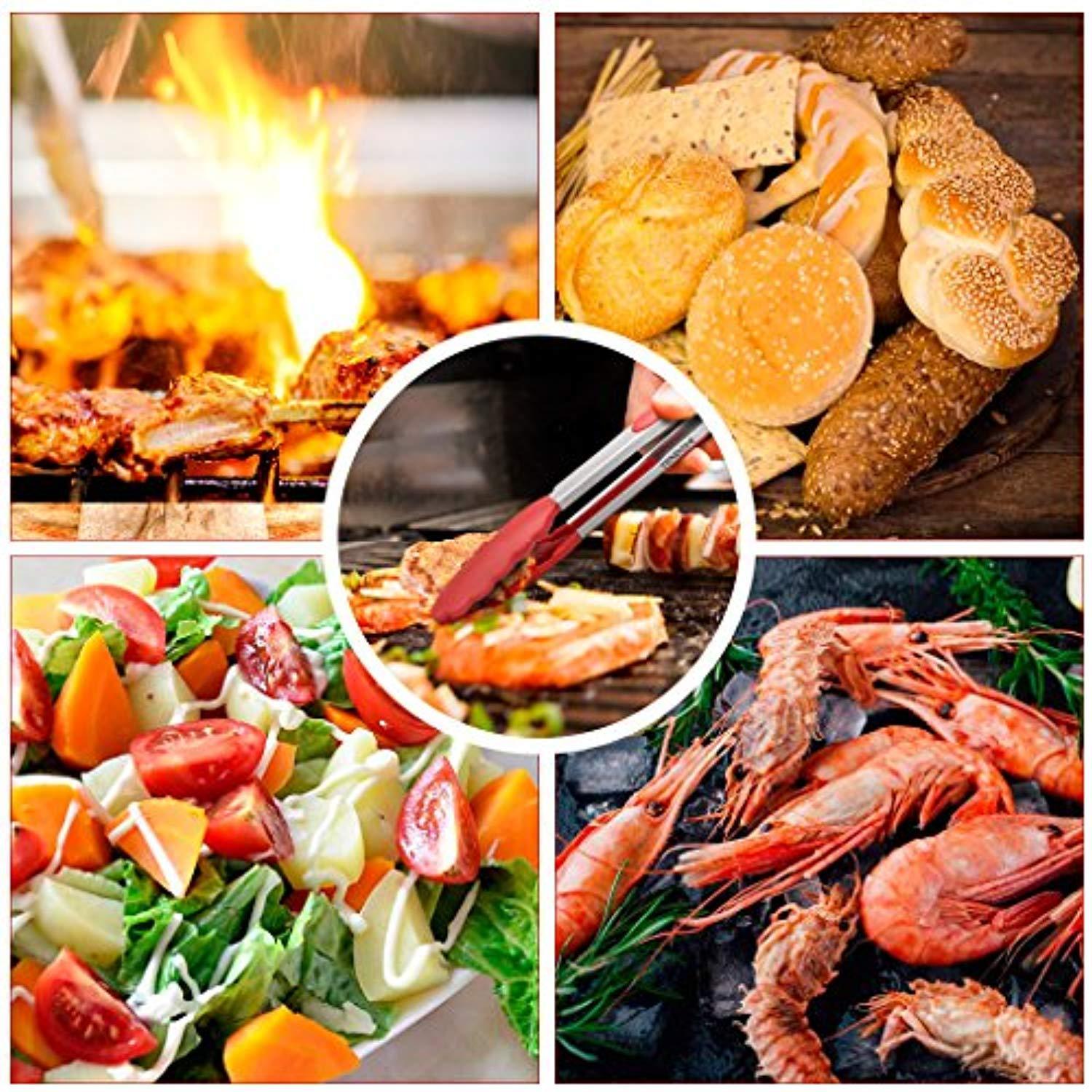 • ♥ GOOD GRIP AND CONTROL FOOD HCLICONE KHCCHEN TONGS - premium 304 stainless steel construction and silicone clamp finished.The barbecue tongs can withstand years of use; Non-slip surface and wave design offer you the best control on food,corrosion resistant.