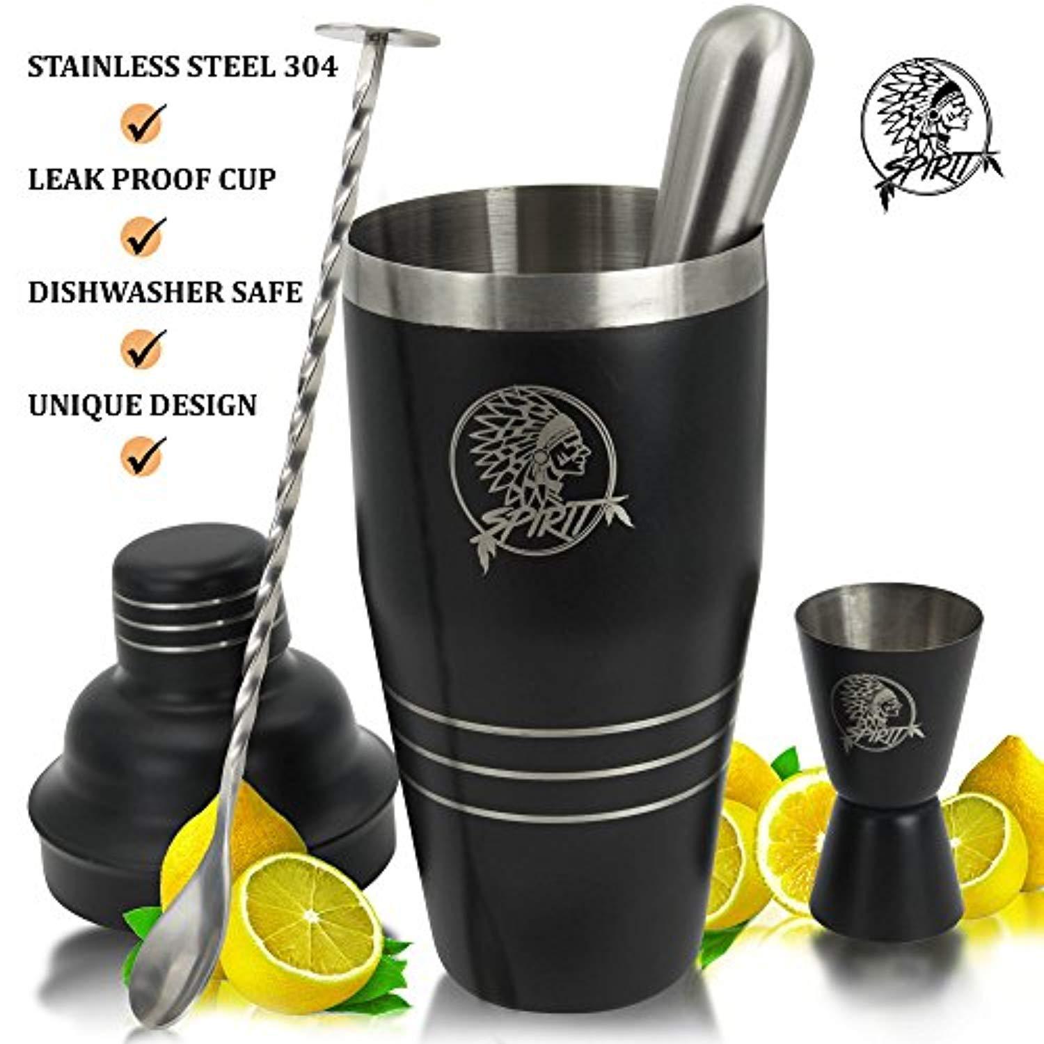 The 8-in-1 bartenders kit | 24oz cocktail shaker with a full beverage preparation set for home & bar made drinks | stainless steel metal | leak proof cup | martini shaker set & mojito kit by Spirit