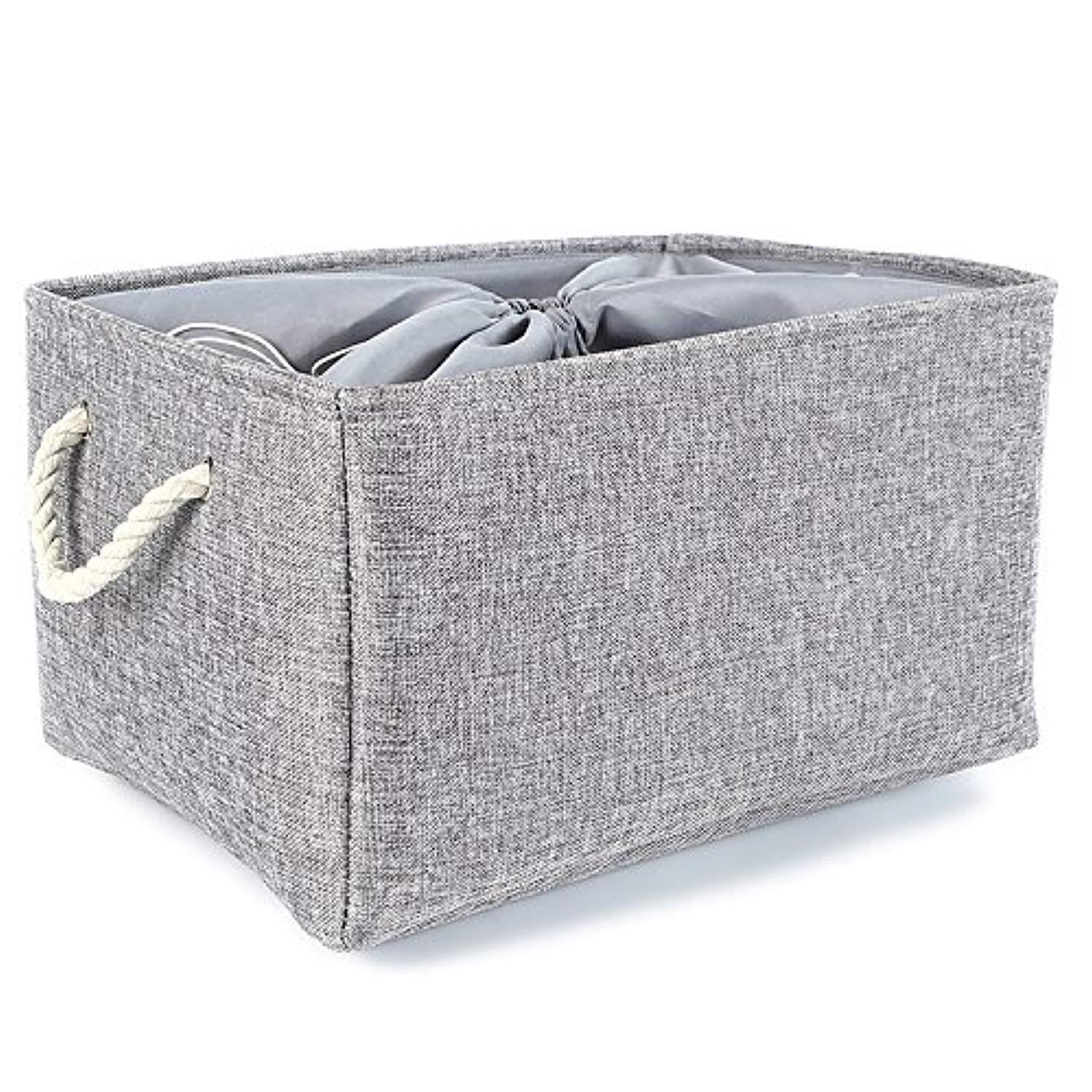 • LARGE STORAGE BASKET DIMENSIONS:18.9(Length) x 15 (Width)x 11.8(Height) inches, perfect rectangle jumbo baskets for gifts empty,decorative storage bin for nursery organizer, there is a drawstring keep away from dust