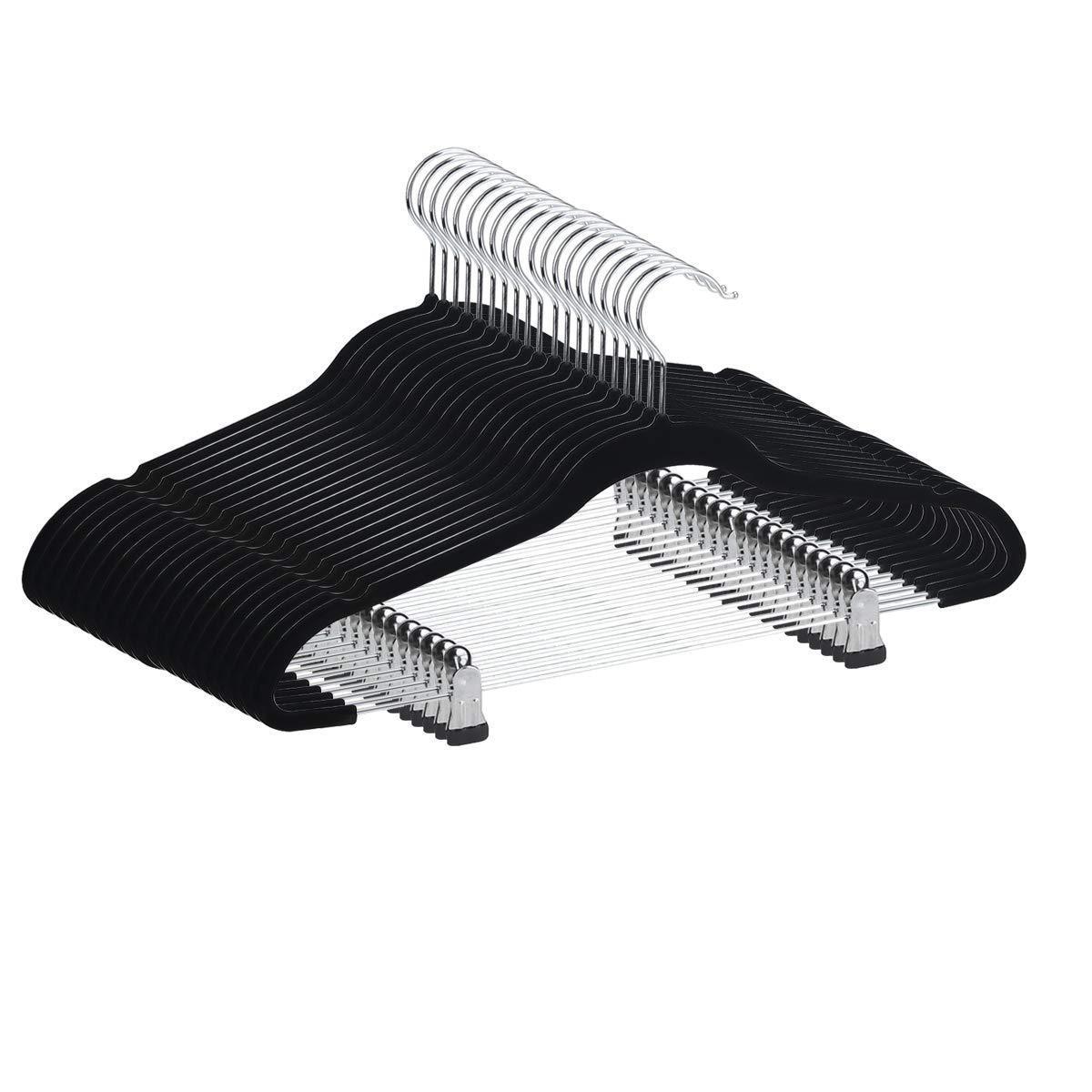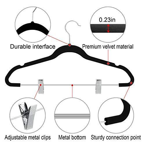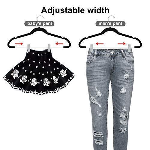 TIMMY Velvet Pants Hangers: Note:Some package vary in the bend because the product has been improved Color:Black Dimension:16.75*9.25*0.24 inches Quantity:20 pack With original TIMMY velvet hangers,organize your closet and elevate your style. Velvet hangers with Clips made with premium materials,this skirt hangers with slim silhouette adds up to 50% More Closet Space. TIMMY Velvet Pants hangers 20 Pack suitable for Skirt clothing width,this adjustable clothes hangers will not be stable. You can adjust the width with the movable metal clips that suitable for adults pants and kids pants. Nonslip velvet hangers surface with grooved shoulder help keep all kinds of clothes secured on velvet hangers. Made of PVC plastic on the clip,increases friction while protecting your clothes from marks and makes your sling clothes do not fall and keep the colthes neat. TIMMY pants hangers ultra thin sturdy structure can hold your heavy duty coat and pants,strong enough to hold 10 pounds. Bendable 180-degree side to side without break with premium velvet quality. TIMMY velvet hangers natural shoulder shaped design keeps your clothes look natural and neat without any crease or bump.Space saving slim design at 5 mm thick which allow you to optimally utilize your closet space too. If there are any questions about this pants hangers,please feel free to contact us,we will response you within 24 hours.