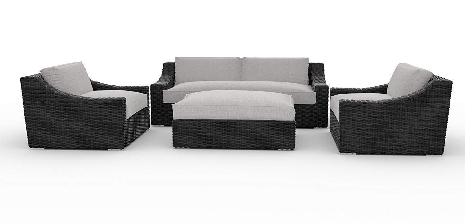 Toja Bretton Outdoor Patio Sofa Set (4 pcs) | Wicker Rattan Body with Sunbrella Cushions (Cast Silver)