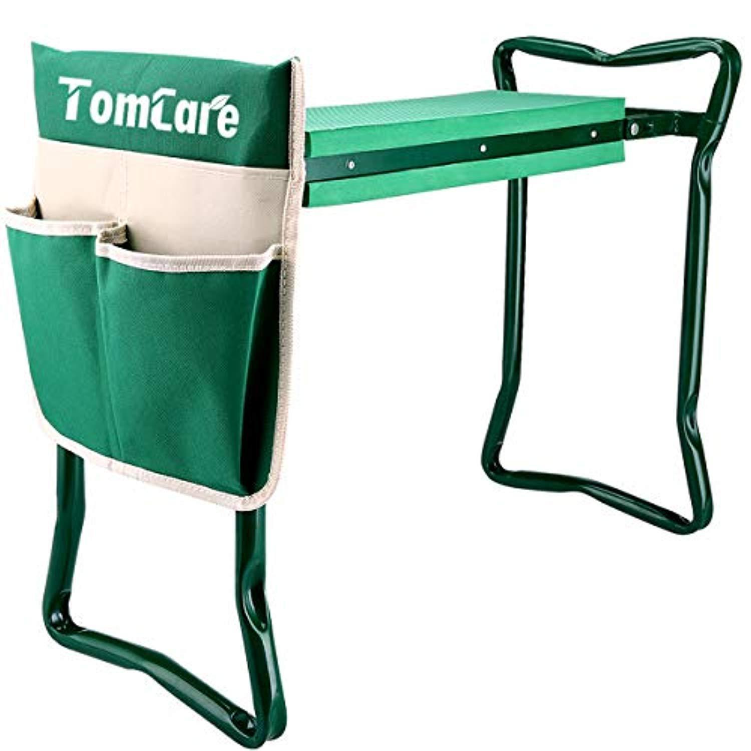 TomCare Garden Kneeler Seat Garden Bench Garden Stools Fordable Stool with Tool Bag Pouch EVA Foam Pad Outdoor Portable Kneeler for Gardening(Large-21.65" x 10.62" x 18.89",Green)