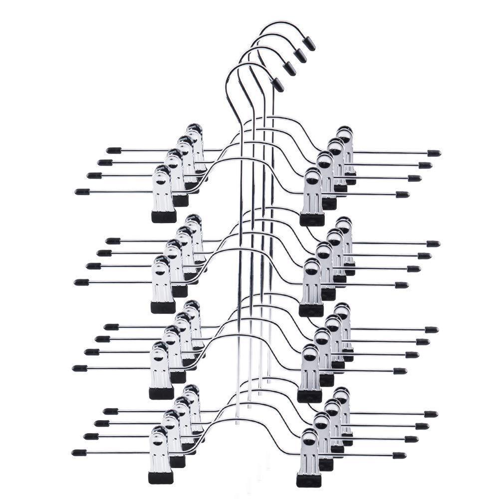 Tosnail 4 Pack 4 Tier Trouser Skirt Hanger - Non Slip Black Vinyl Clips Great Space Saver Your Closet