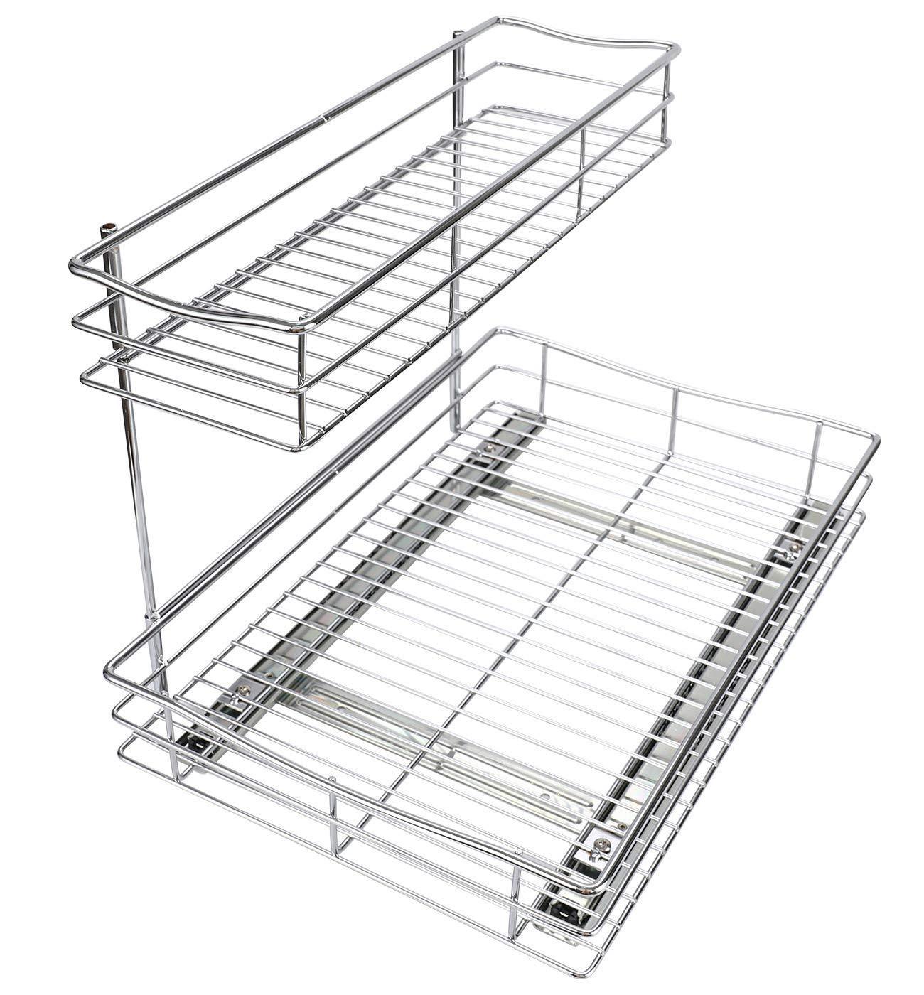 TQVAI Pull Out Under Sink Cabinet Organizer 2 Tier Slide Wire Shelf Basket - 11.49W x 17.08D x 11.85H - Request at Least 12 inch Cabinet Opening