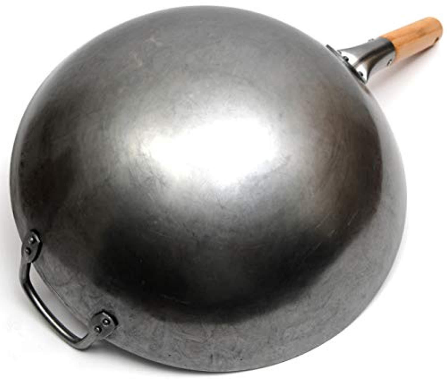 • A wok to pass down to the next generation - 4 3/4 lbs. of Chinese cooking innovation. 1.8mm thick commercial quality carbon steel hand hammered by professionals in Guangdong, China.