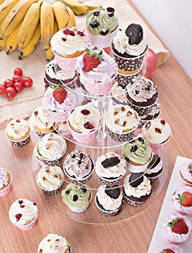 TWING 4 Tier Round Acrylic Cupcake Display Stand,Weeding Party Dessert Stand Tree Tower -Clear Display Holder Tree