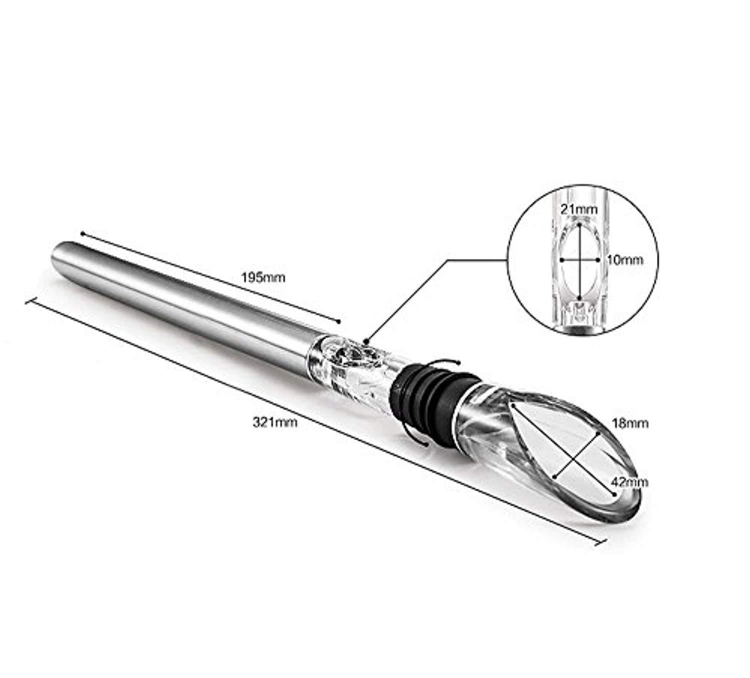 • EASY AND FLEXIBLE TO USE - Unscrew and place the stainless steel chill rod in the freezer for a few hours; Open a bottle of wine, pour out some wine in another glass (to prevent spilling); Attach stainless steel rod to pourer; Place assembled chiller stick into wine bottle ; Then serve and enjoy your vino! * If you don't want to chill your wine, just use the pourer and aerator.