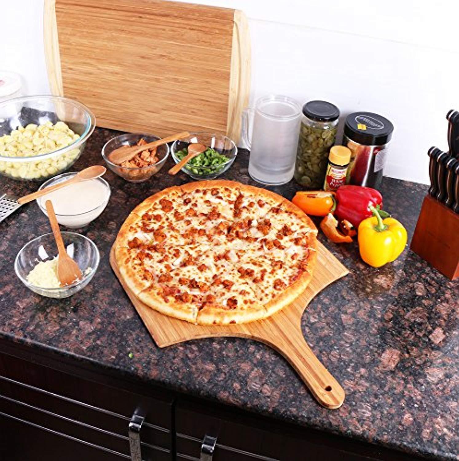• The bamboo peeler is sized with the right width to fit all your home pizzas; it is thick enough to ensure that it does not warp; it is thin enough to slide easily under a pizza or a bread placed in the oven