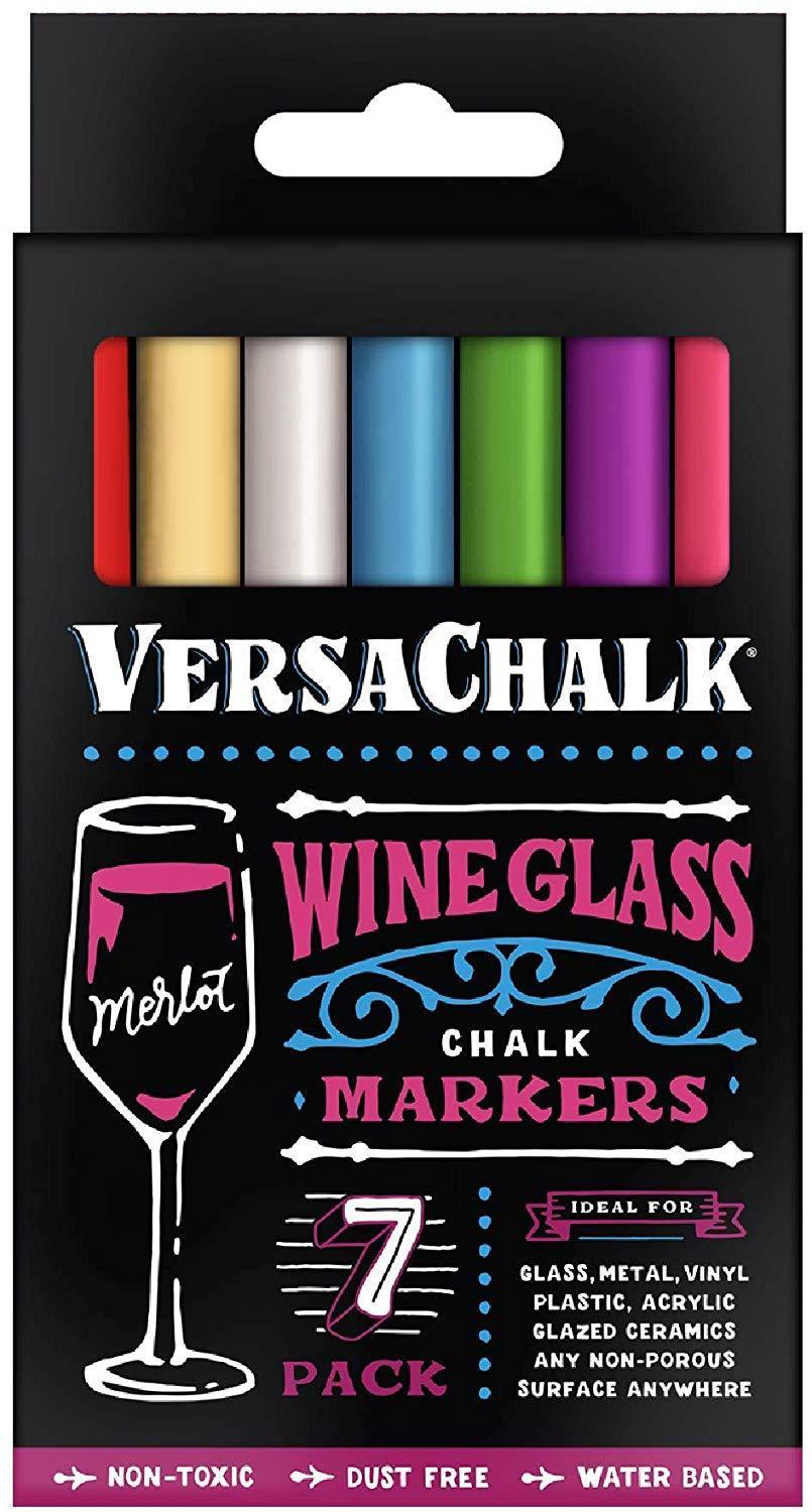VersaChalk Washable Wine Glass Markers- 7 Vibrant Erasable Colors to Write on Party Cups, Drink Glasses, Beer Mugs, Clear Plastic Jars, Windows, and Mirrors