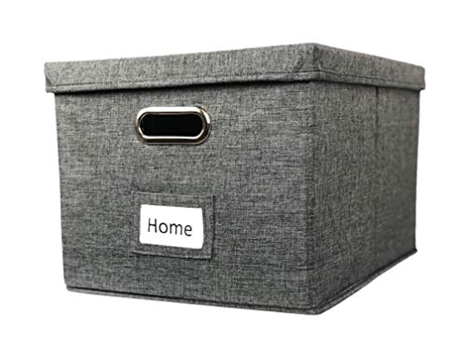 Viluh Decorative File Box with Lid | Collapsible Storage Organizer | Linen Filing & Office Bin | Letter/Legal | Hanging Folders | Important Document Container | Charcoal Gray | (1 Pack)