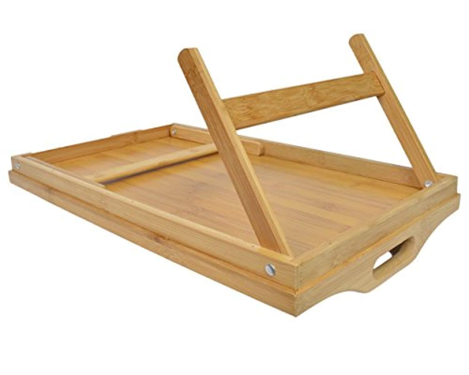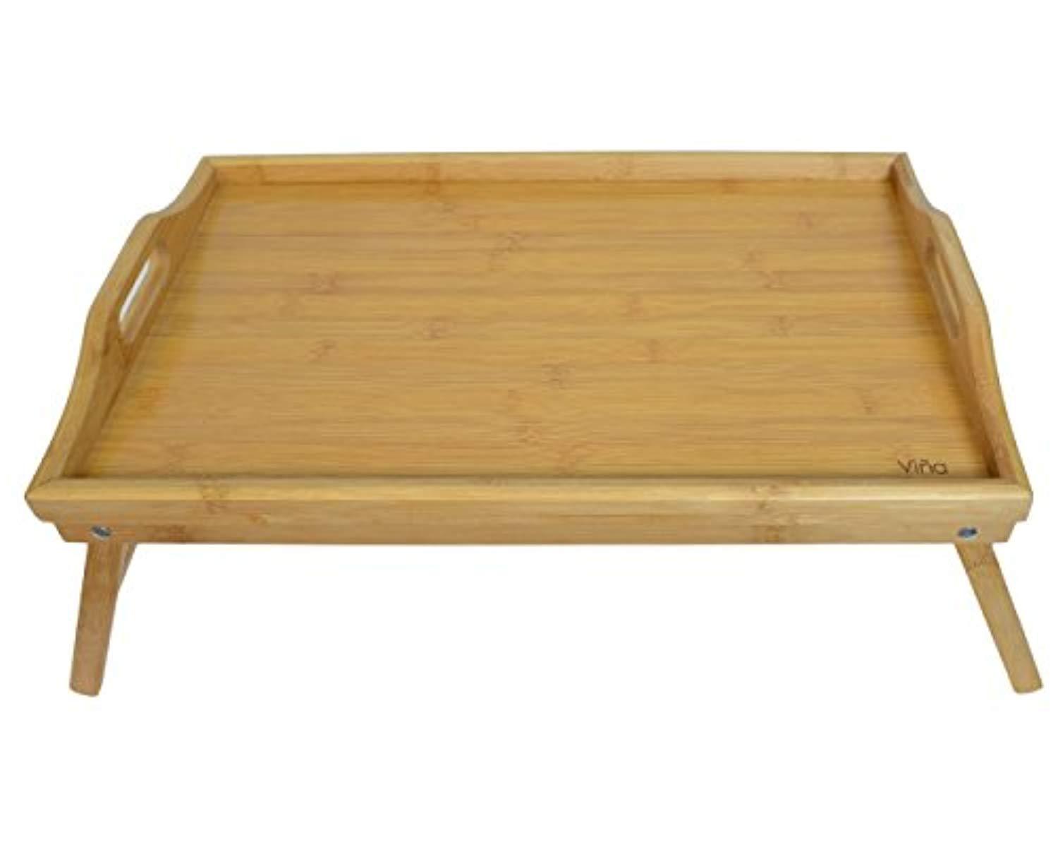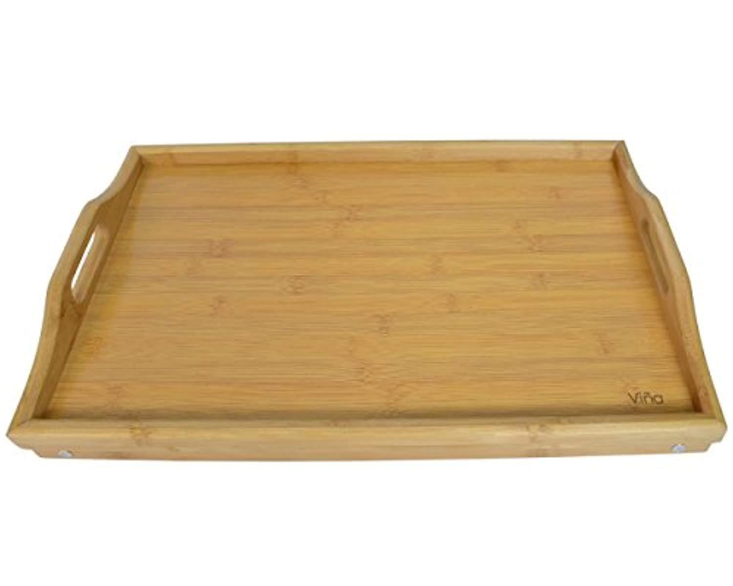Vina Bamboo Bed Breakfast Tray Table with Folding Legs and Both Sides Handle, 19" L x 12" W x 9" H, Best for Food Dish Plates & Laptop Computer