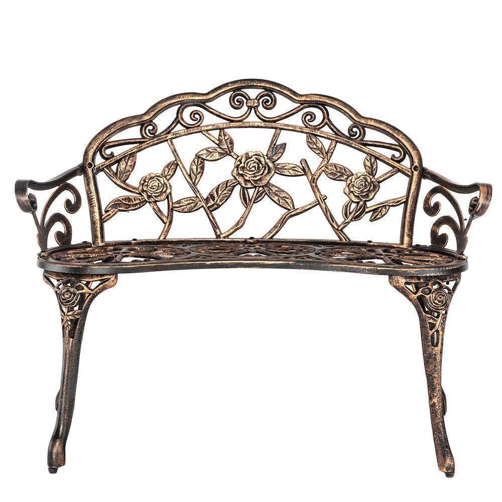 This beautifully designed powder coated chair will add elegance to your front or backyard, which will be a great addition to garden or make a completion for your path. The highlight is the hollowed rose design. This bench features powder-coat steel construction to deliver durability and light weight, and the antique finish adds an attractive look to your patio or deck. The stylish design on the backrest provides a stylish look, and the bench is easy to assemble. Beautifully designed powder coated bench will add elegance to your front or backyard, ideal for along a path, under a tree, among the flowers or in your favorite peaceful spot.