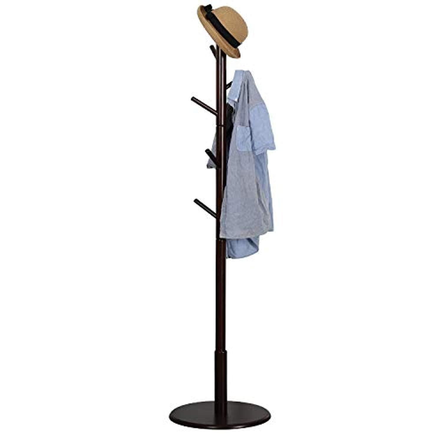 Vlush Sturdy Wooden Coat Rack Stand, Entryway Hall Tree Coat Tree with Solid Round Base for Hat,Clothes,Purse,Scarves,Handbags,Umbrella-(8 Hooks,Dark Brown)