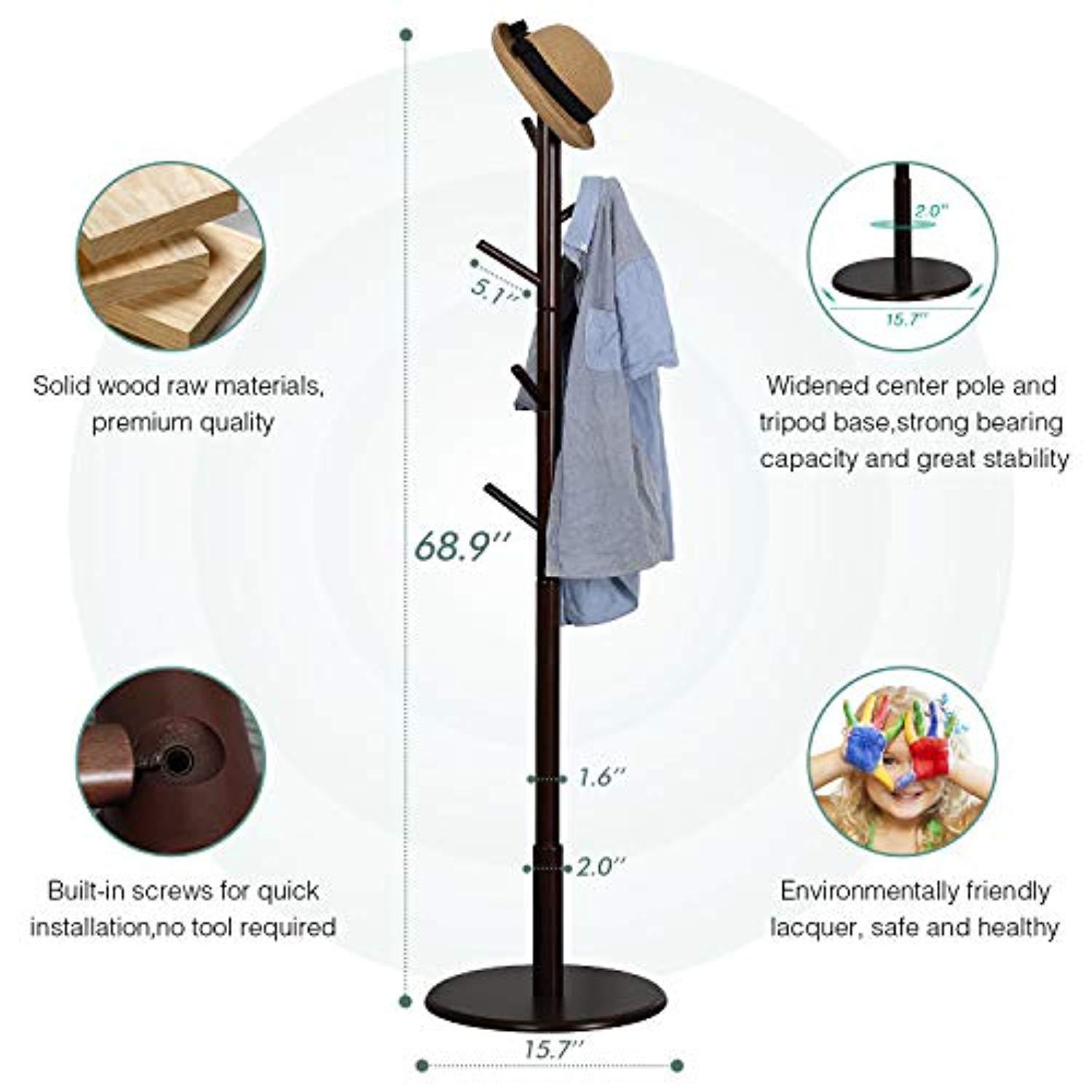 • ✔SOLID CONSTRUCTION--This Free standing coat hanger is made by real wood coated with environmentally friendly lacquer, which is waterproof, anti-corrosion, non-toxic.
