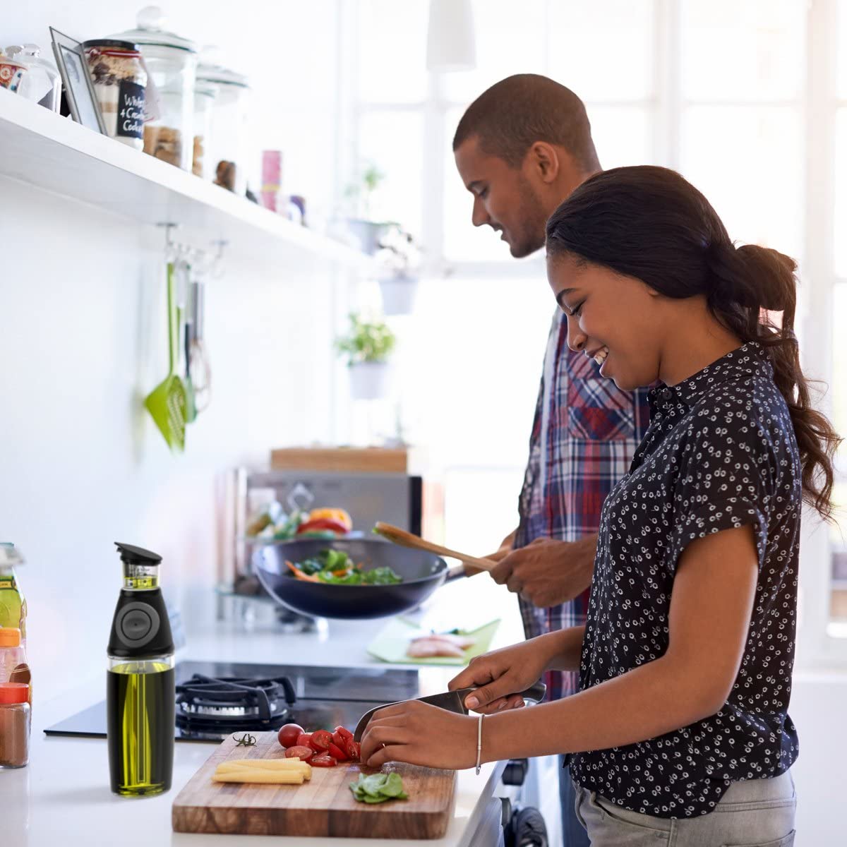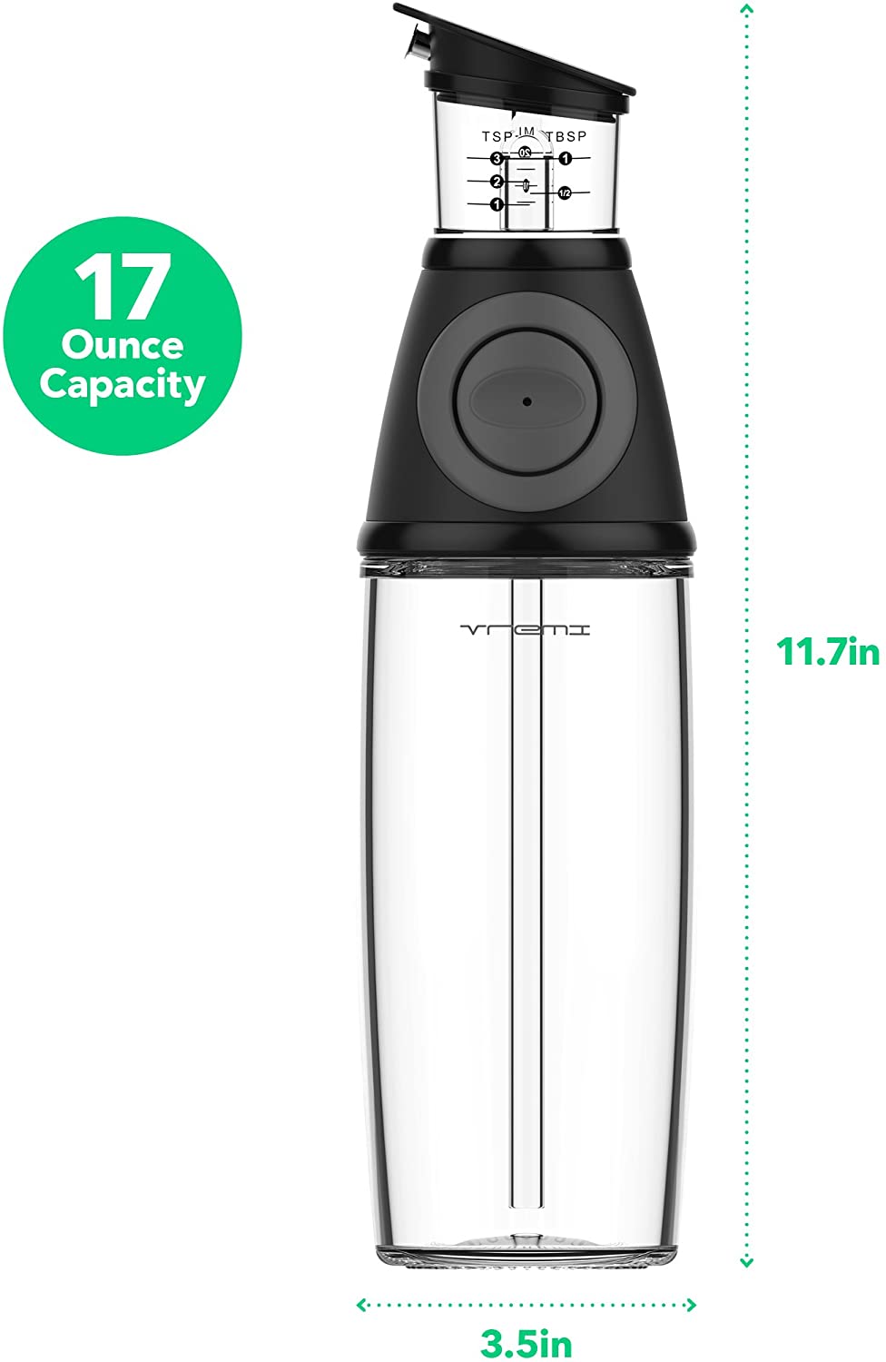 • OIL BOTTLE with PRECISE MEASURING LABELS - 17 ounce cooking oil dispenser for kitchen with teaspoon, tablespoon, and milliliter marks on pourer top to mix and measure olive oil and vinegar. Perfect for salad dressing or for drizzling bread with flavor