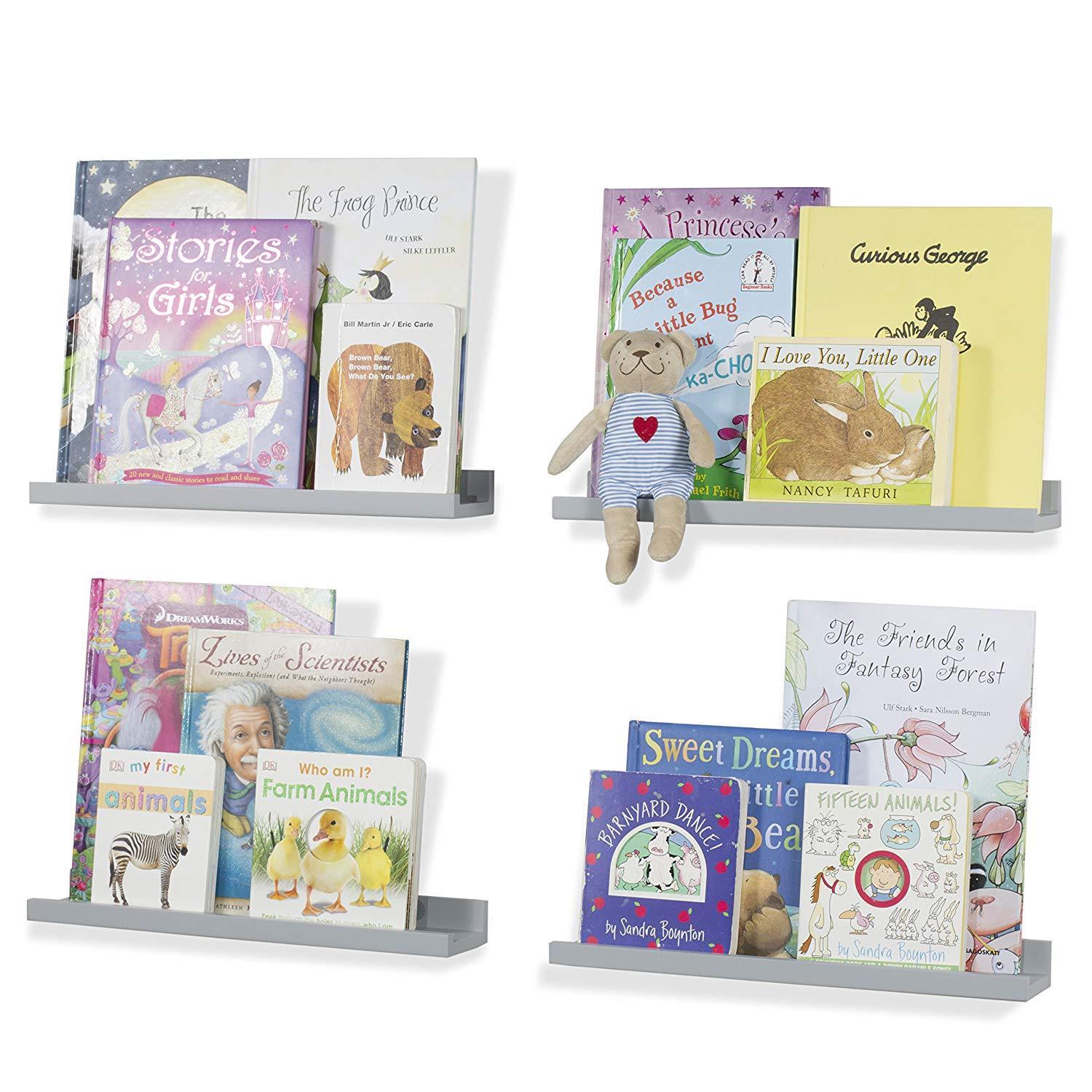 • Sturdy Construction: The 17” set of 4 white floating bookshelves for kids can be staggered on the same wall or used in different rooms for an affordable and versatile solution to organizing more at once. Chic white shelves bring organization, designer style and decor to cluttered playrooms or bedrooms