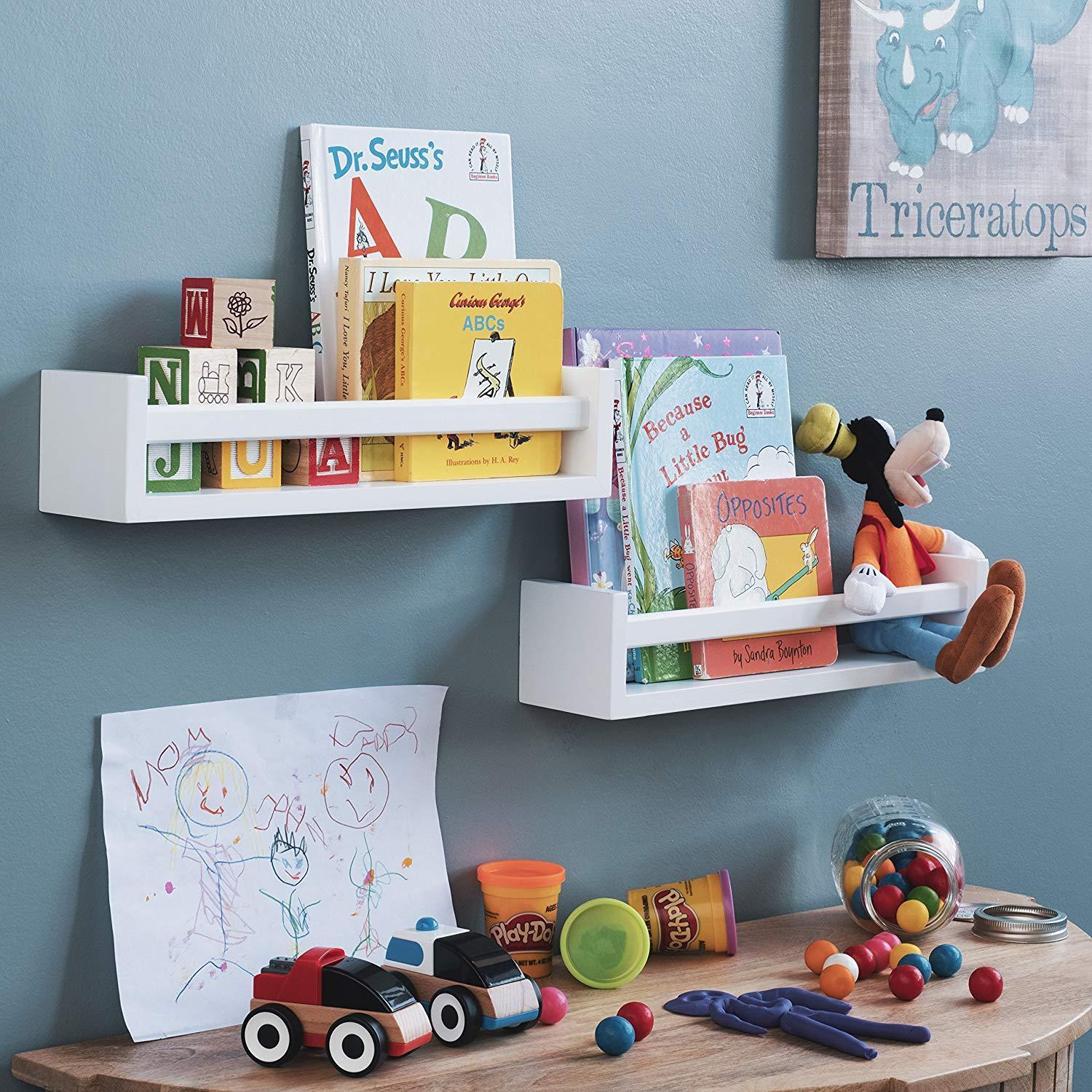 • STURDY CONSTRUCTION – Organize your childrens books, toys, small picture frames, and other decorative pieces with this Nursery Room Wall Shelf Set. It is made with a sturdy, solid wood and has an understated yet functional design that is great for bedrooms, kitchens, and bathrooms