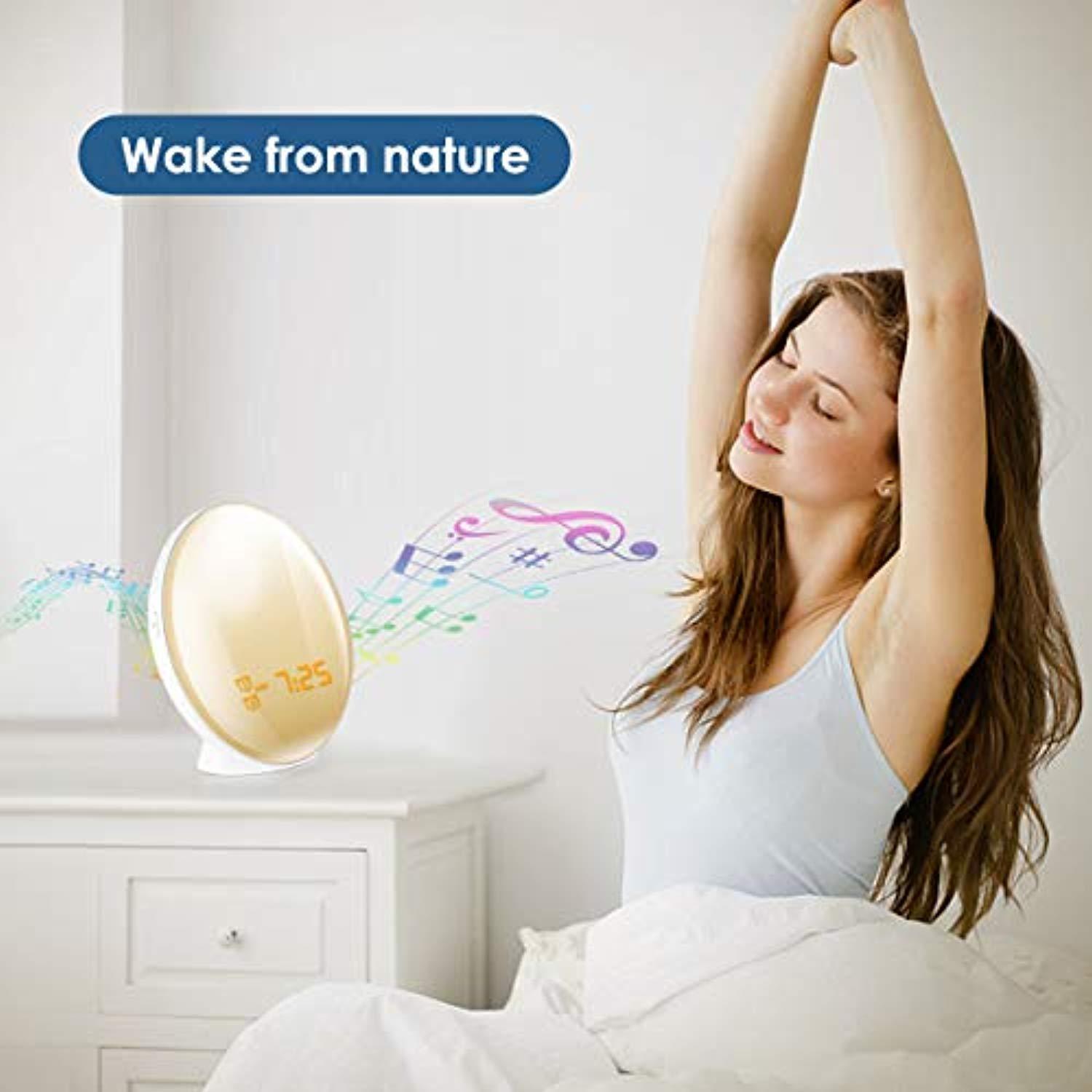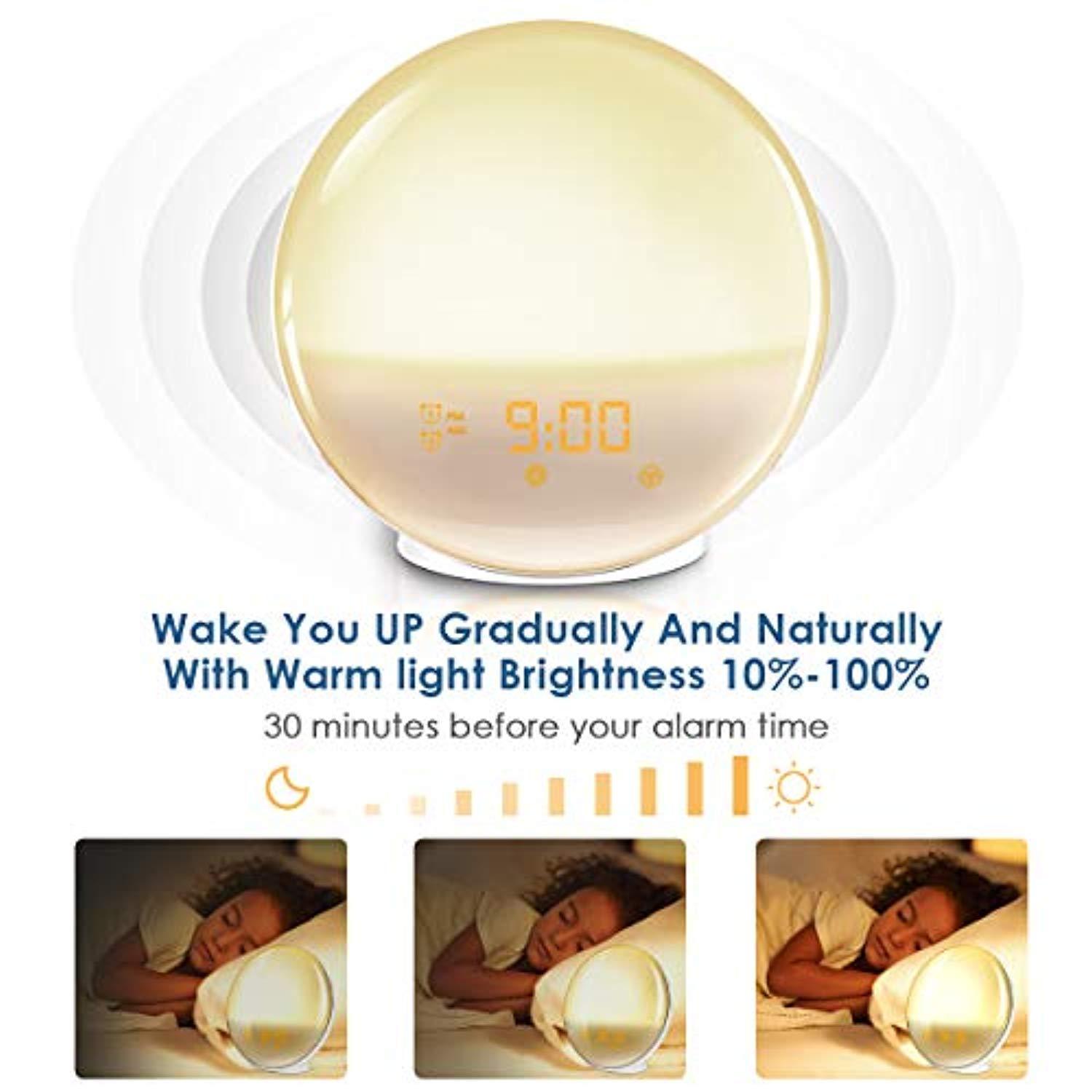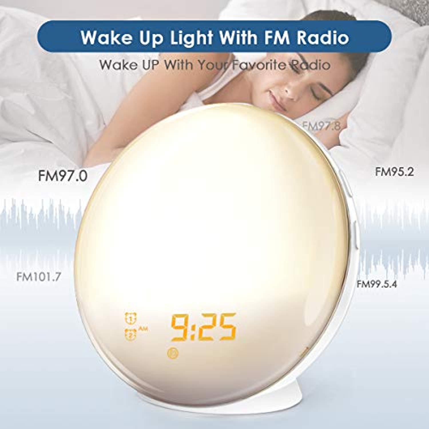 Warmhoming Wake-Up Light Alarm Clock with Colored Sunrise Simulation and Radio for Bedroom