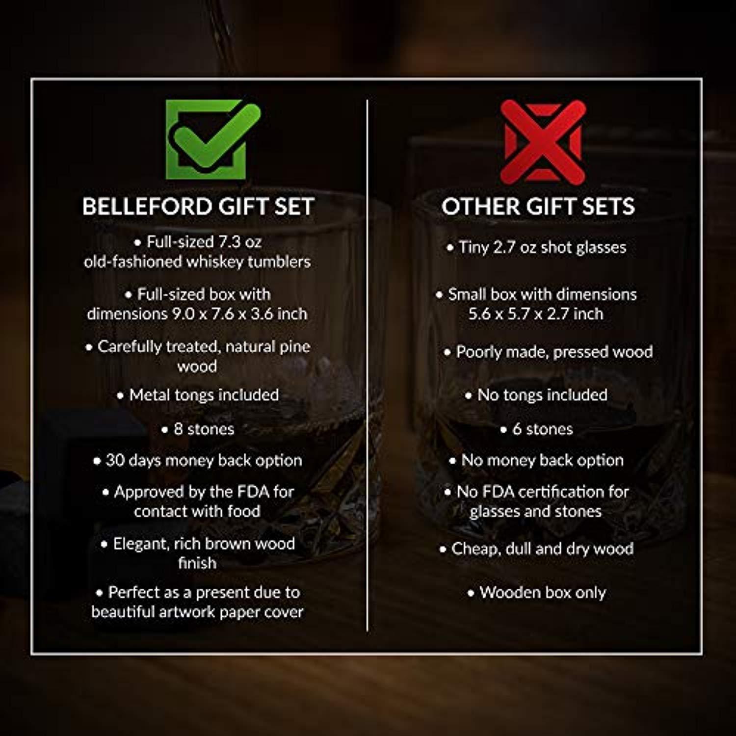 • ✅ FOOD SAFE: The whiskey rocks and tumblers glass set is FDA approved for contact with food, BPA-free, lead-free, taste- and odorless. Everything in the whisky glasses and rocks glass box is easy to clean and reusable!