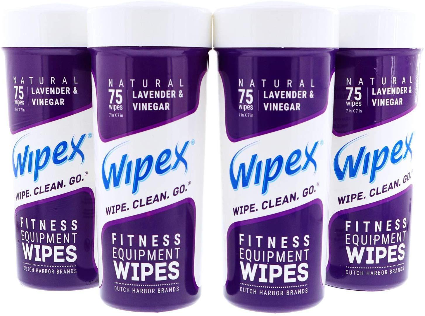 Wipex Natural Gym & Fitness Equipment Wipes, Vinegar & Lavender, 75ct Canister, Great for Yoga Mats, Pilates & Dance Studios, Home & Corp Gym, Peloton & Cycle Bikes, Spas