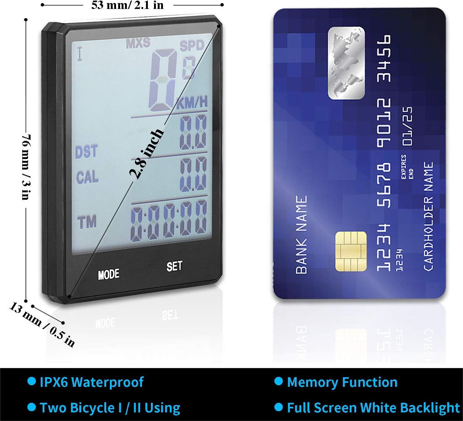 • ✔MULTIFUNCTION - Cycle Odometer has all the basic functions, memory function, automatic wake-up, 2 users data recording, SPD, AVS, MXS, ODO, DST, clock, temperature, etc