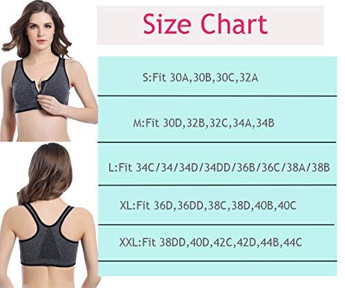 Women's Zip Front Sports Bra Wireless Post-Surgery Bra Active Yoga Sports Bras