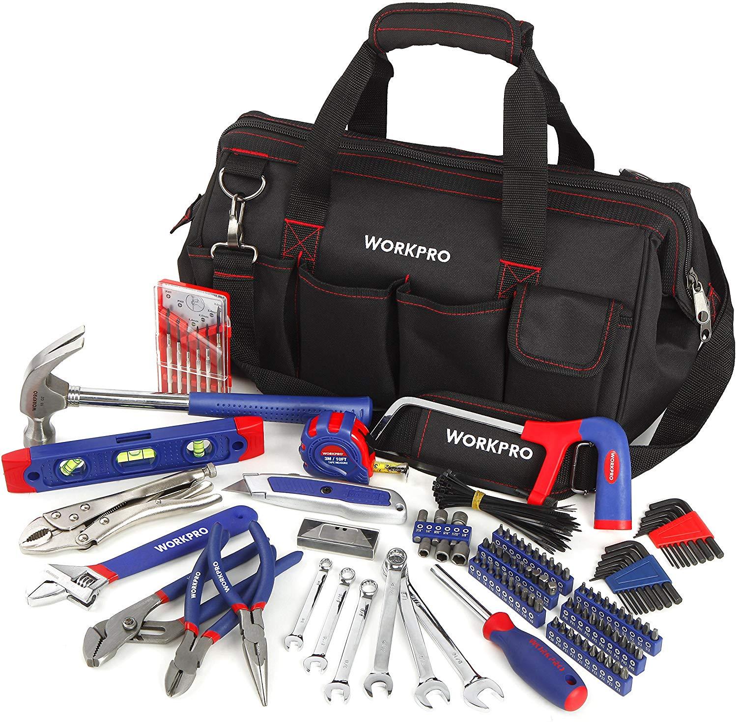 WORKPRO 156-Piece Home Repair Tool Set - Daily Use Hand Tool Kit with Wide Open Mouth Tool Bag - Durable, Long Lasting Tools - Perfect for DIY, Home Maintenance