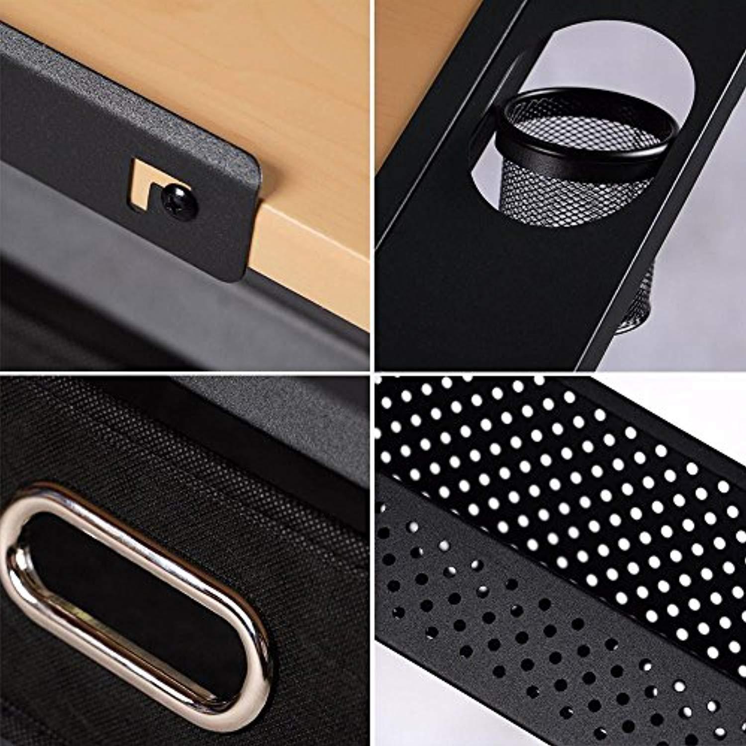 • THOUGHTFUL DESIGN: Detachable holders on the right can be taken out for easy cleaning; multipurpose holder consists of honeycomb pen holes and containers for better organizing; a movable hoop around the mesh pen holder can continuously keep the holder parallel to the ground and hold the stationery tightly while tilting the tabletop; 2 drawers and a long shelf below can store lots of the stationery and drawing tools