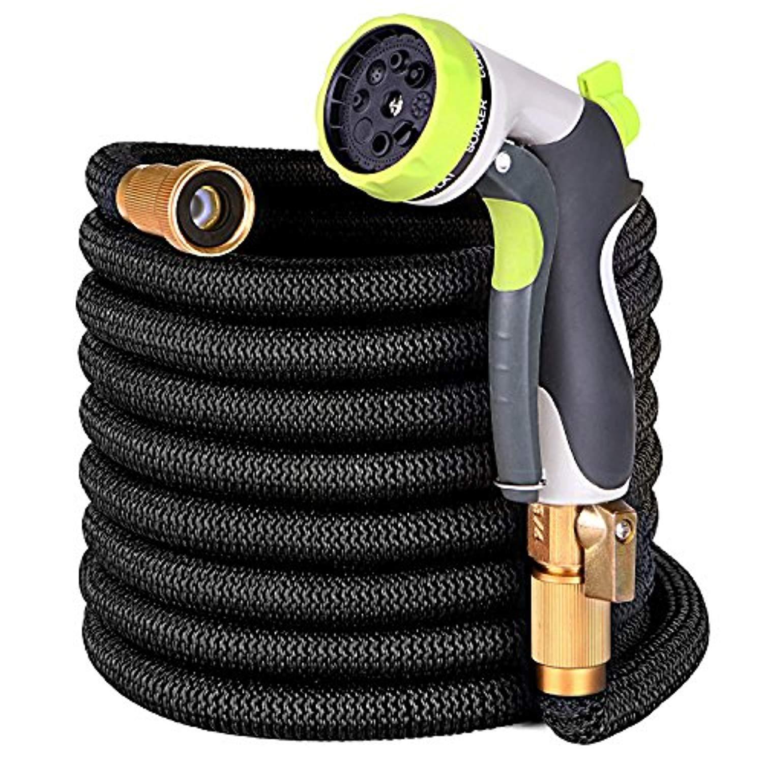 YEAHBEER 50 ft Garden Hose,Latex Core with 3/4 Solid Brass Fittings,Durable and Lightweight Expandable Water Hose,8-Mode High Pressure Spray Nozzles,Free Storage Bag + Hook