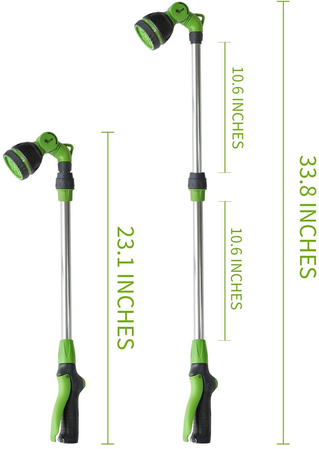 YESTAR 24-33" Watering Wand 180° Rotating Head Garden Spray Wand Front Trigger Shower Wand with Adjustable 8 Patterns & Flow Control