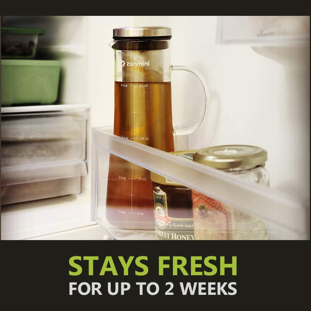 • Stay Fresh or Up To 2 Weeks :When finished brewing, simply remove the filter, dump out the coffee grounds and move the silicone ring to the base of the airtight lid. Put the filter away (The fliter is removable) and pop the lid back on the pitcher and store in the fridge for later enjoyment.