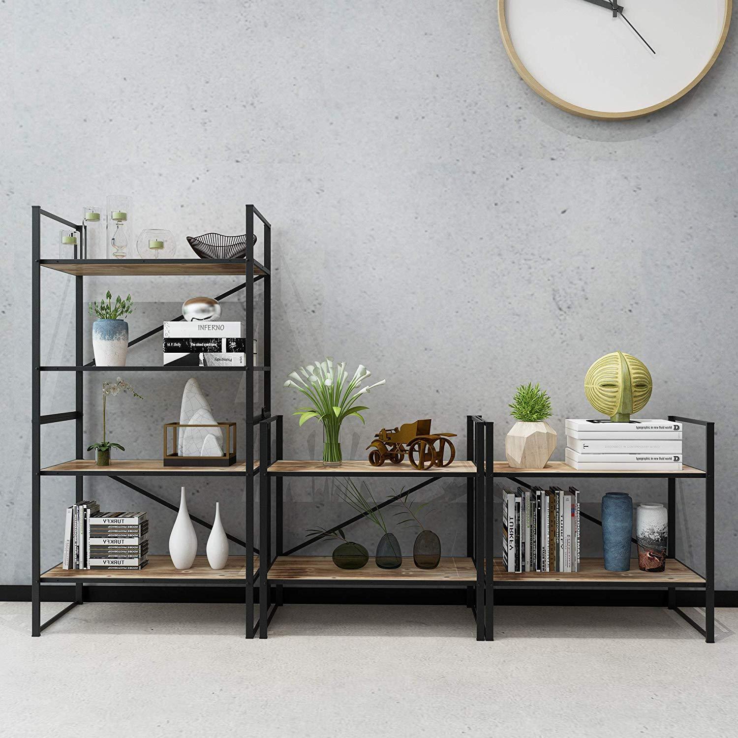 ZGXY Classics 4-Tier Shelving Units Storage Rack Supreme Steel Wood Display Shelving Organization, Black